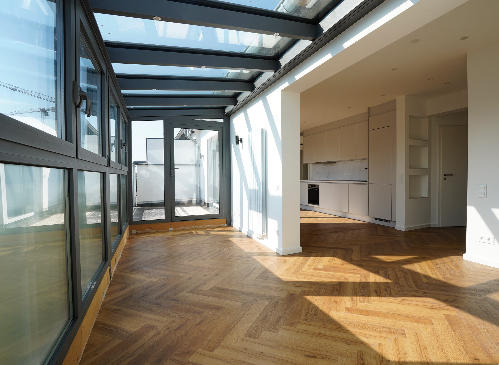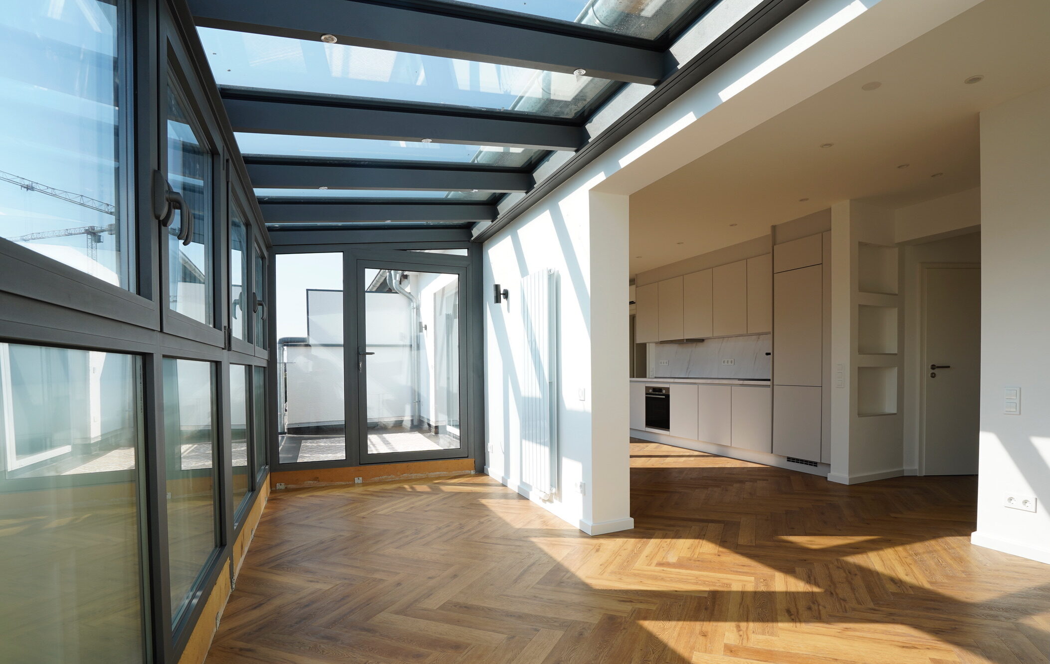 Kernsanierung, Grundschnitt Neuaufteilung und Umbau Penthouse Wohnung in Duesseldorf.